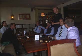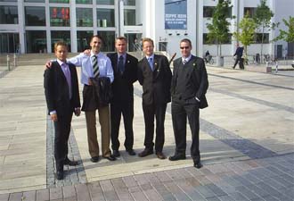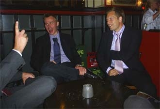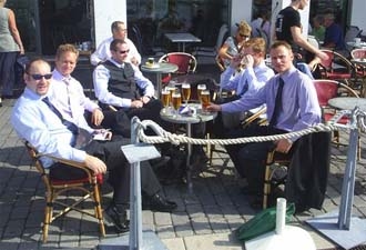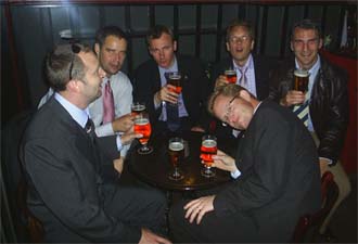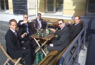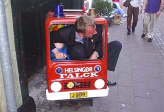 Herr Petersson testar öl, Herr Hallgren kryper in i en brandbil och Herr Norlander verkar vilja vara med på bild.